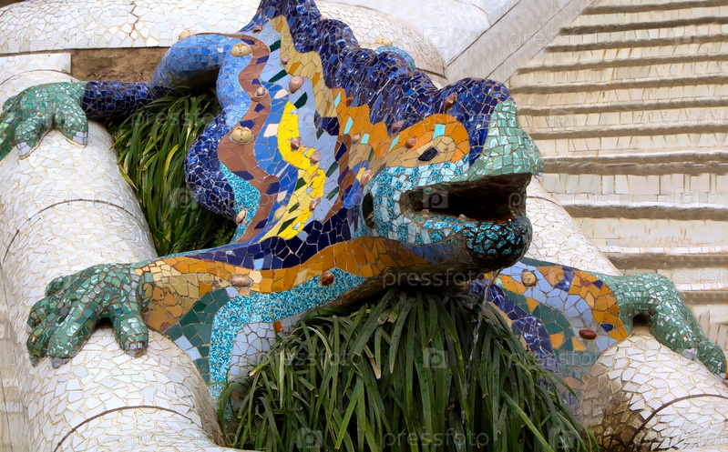 Ящерица в парке Гуэль, Барселона, Испания