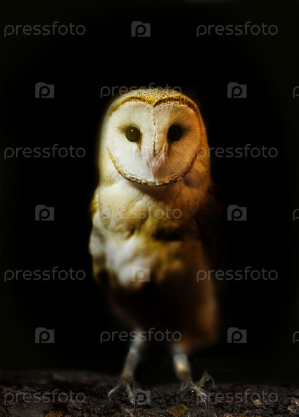 Портрет сипухи с черным фоном. Неглубокая глубина резкости (мягкий фокус на голове совы)