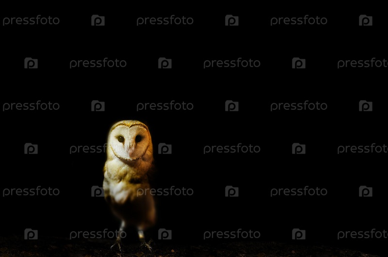 Портрет сипухи с черным фоном. Неглубокая глубина резкости (мягкий фокус на голове совы)