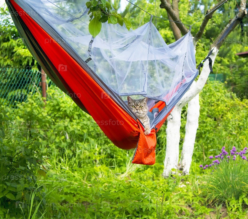 Кошка в гамаке на открытом воздухе