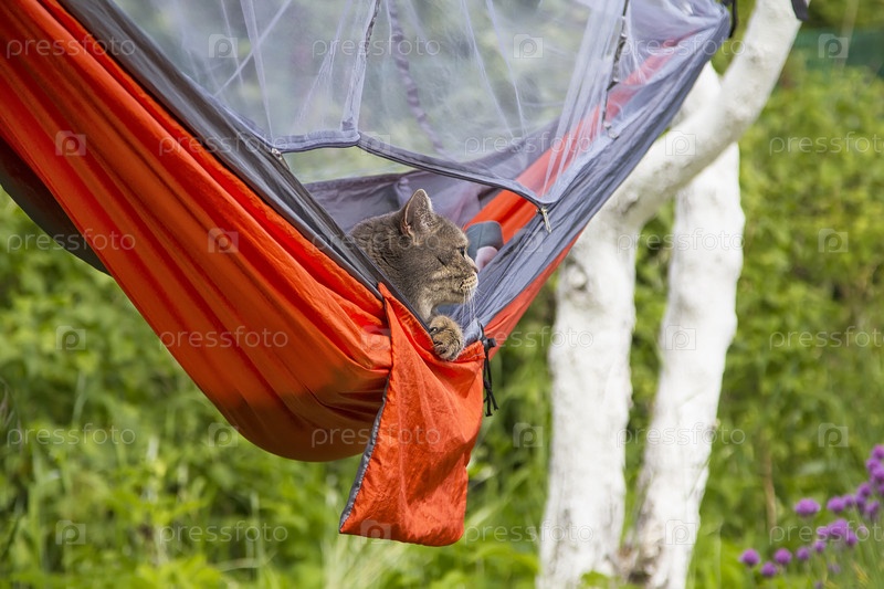 Кошка в гамаке на открытом воздухе