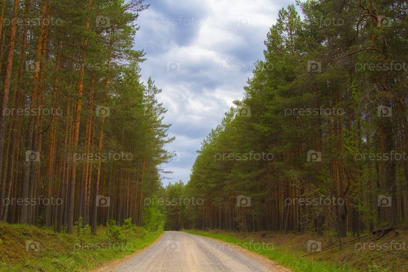 Дорога в сосновом лесу. летнее утро