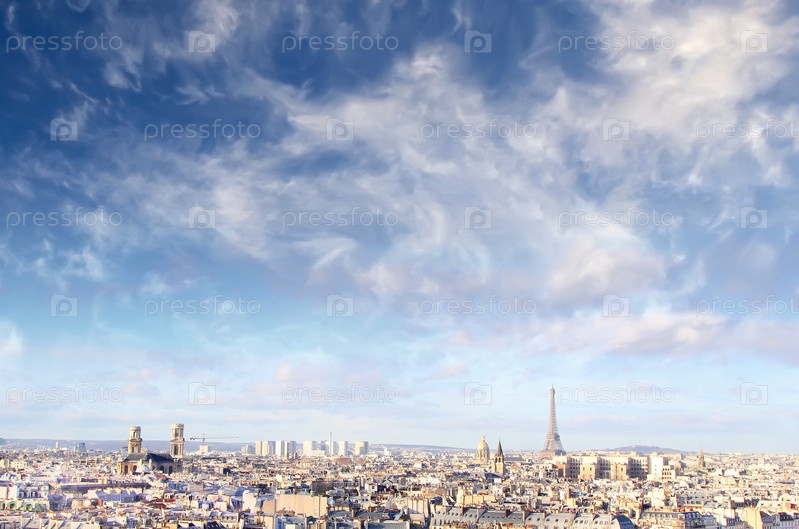Панорамный вид на Париж с силуэтом Эйфелевой башни