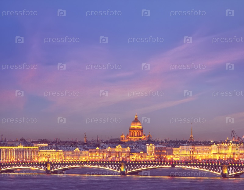 Ночной вид на Неву и Исаакиевский собор и Троицкий мост. Фон путешествия