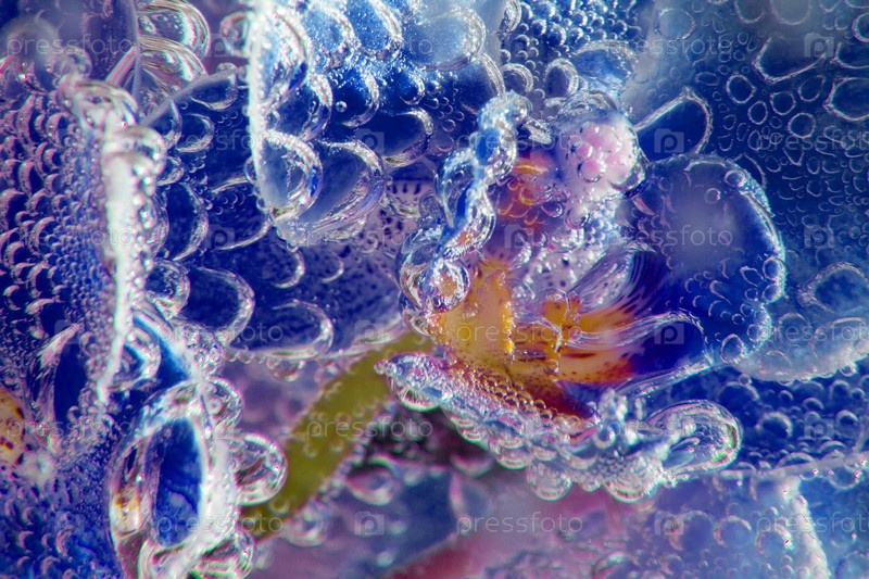 Орхидеи в газированной воде с пузырьками крупным планом на черном фоне. абстрактная композиция