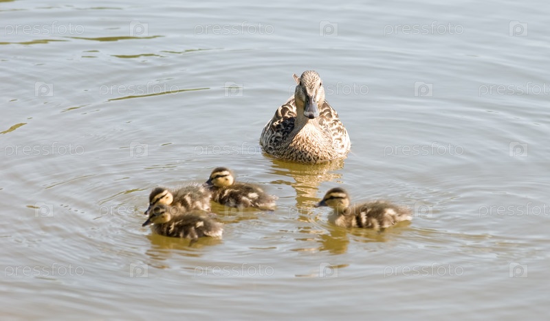Утка с утятами в озере