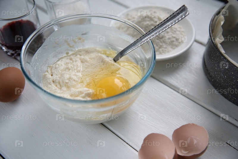 Процесс приготовления пирога с ингридиентами