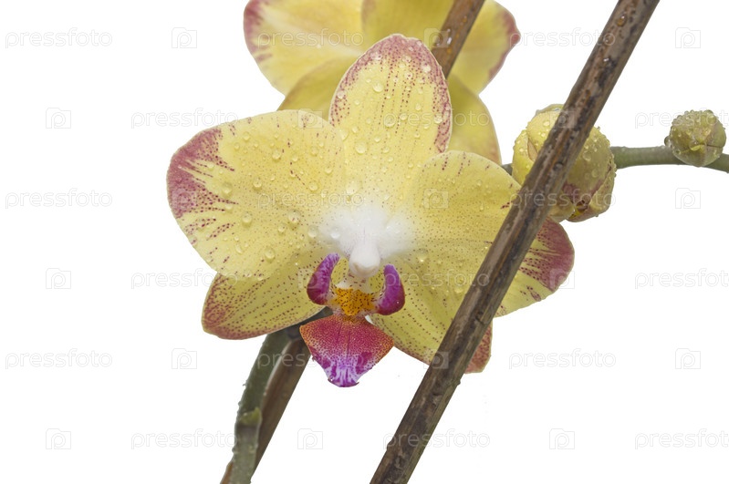 Желтый с розовым цветком орхидеи. Цветок крупным планом