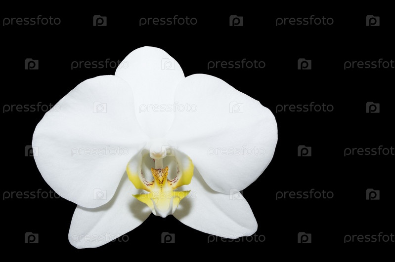 Белый цветок орхидеи на черном фоне. Цветок крупным планом