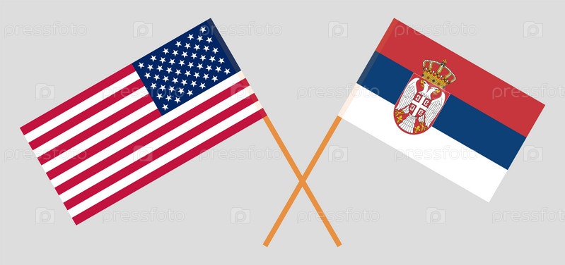 Скрещенные флаги Соединенных Штатов Америки и Сербии. Официальные цвета, корректные пропорции