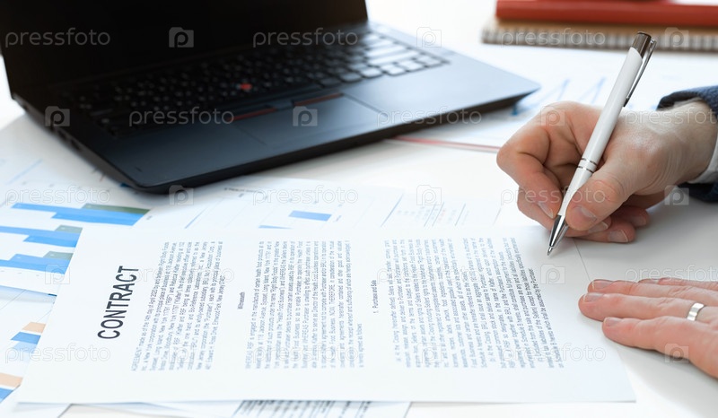 Крупным планом мужские руки. Офисный работник за рабочим местом. Менеджер работает