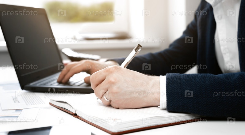 Крупным планом мужские руки. Офисный работник за рабочим местом. Менеджер работает