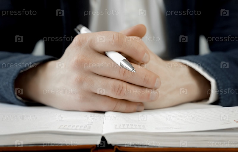 Крупным планом мужские руки. Офисный работник за рабочим местом. Менеджер работает