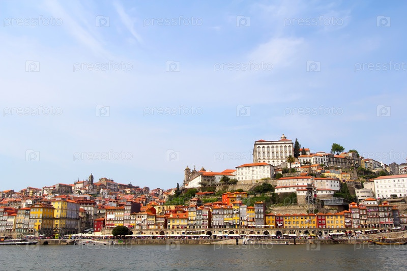 Берег реки Дору и лодки с винными бочками, Порту, Португалия