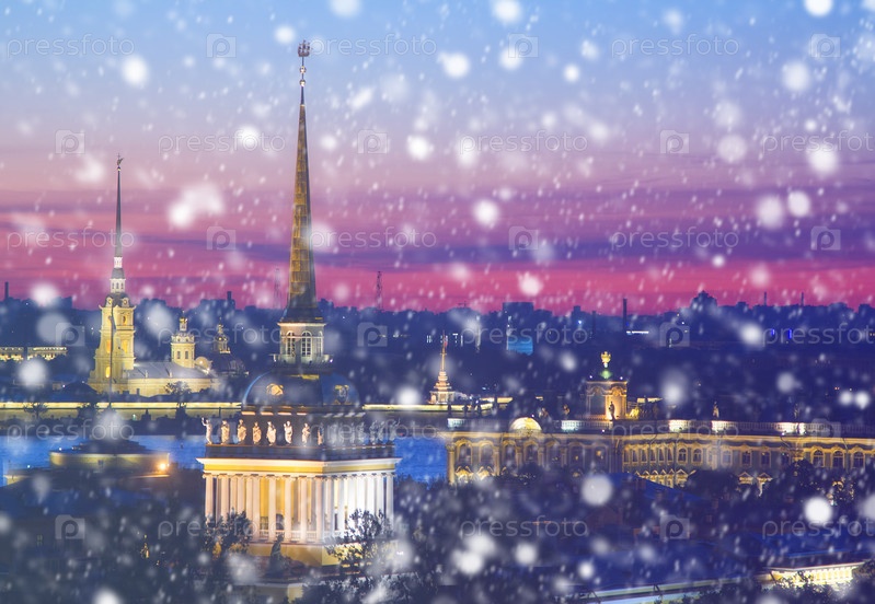 Волшебная зимняя ночь в Санкт-Петербурге, Россия