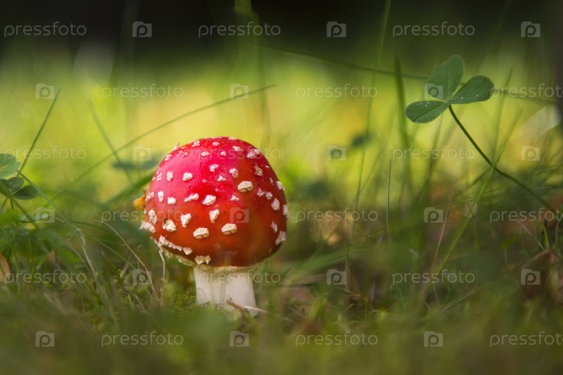 Красивый гриб в лесу. Мухомор красный, ядовитый гриб