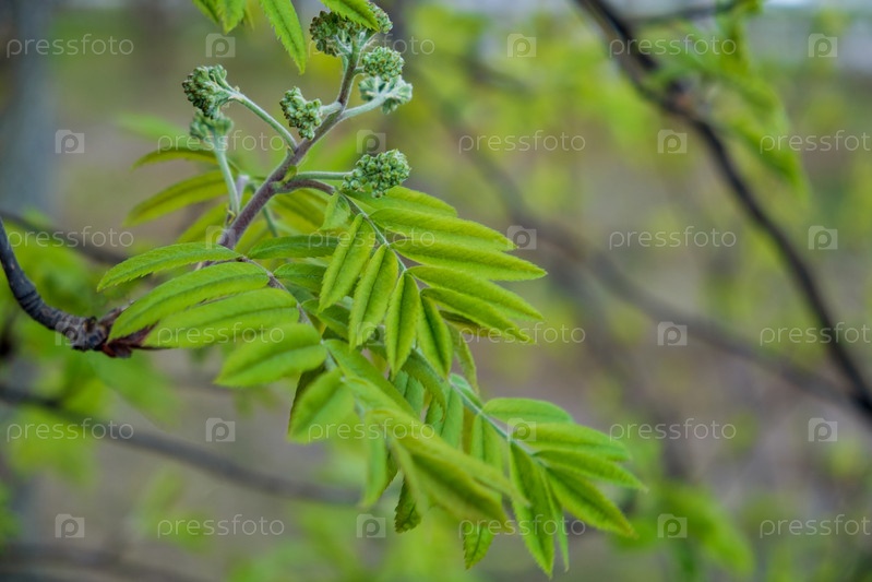 Ветка рябины с молодыми листьями