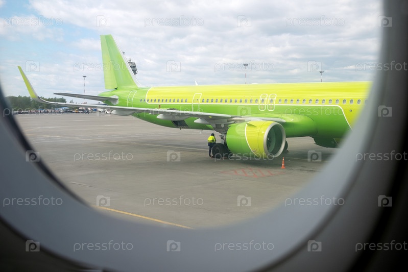 Вид из окна самолета на аэродром