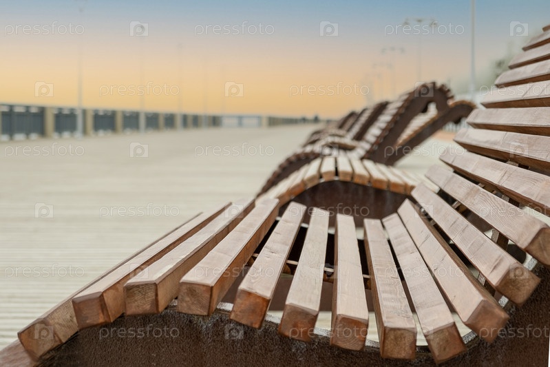 Шезлонги на пустой морской набережной