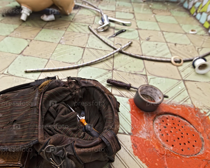 Сантехнические работы. Ремонт старых раковин. Сумка сантехника