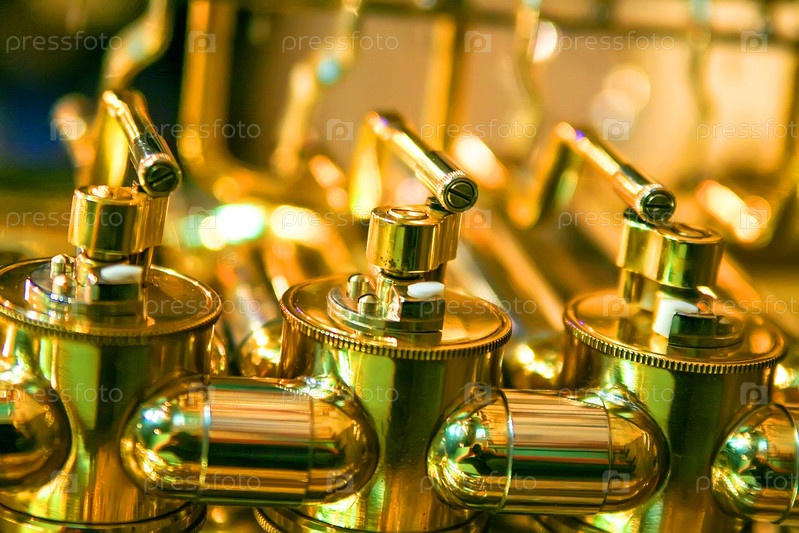 Инструменты духового оркестра. духовые инструменты крупным планом.