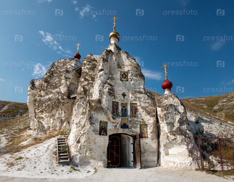 Деревня Костомарово, Воронежская область, Россия, АВГУСТ - 18.2021: Пещерный собор Спаса Нерукотворного в Костомаровском Спасском монастыре