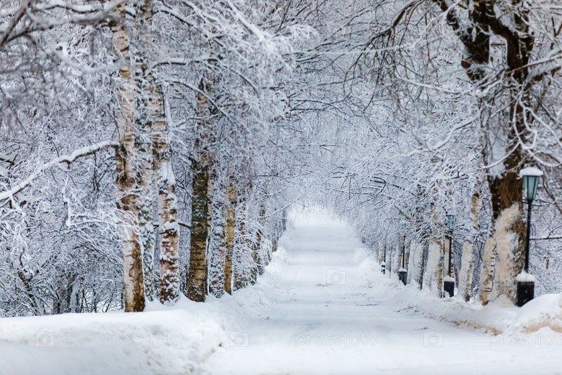 Зима, дорога в заснеженном парке