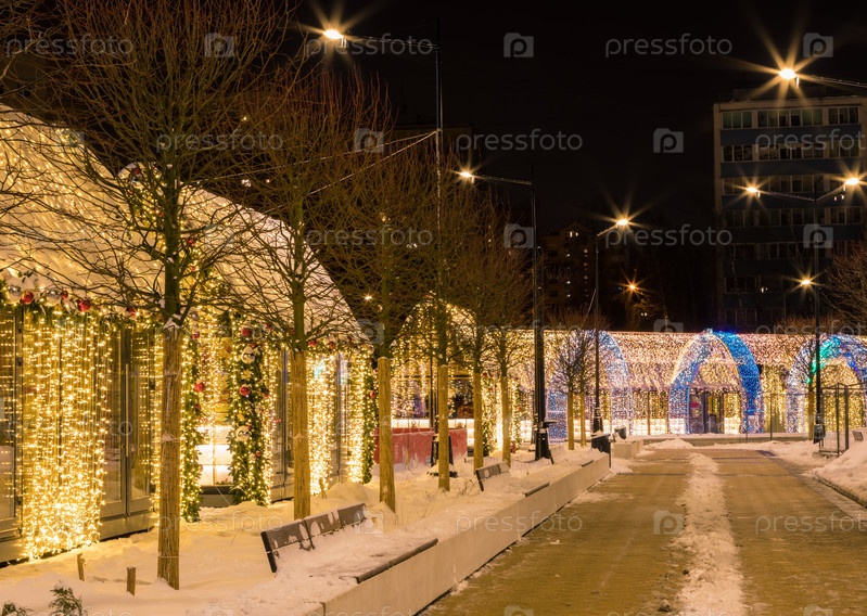 Новогодняя иллюминация города в сумерках