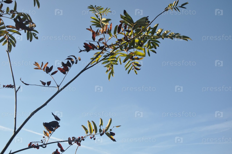 Ветки рябины. Рябина. Ягоды рябины. Рябина против неба. Садовые деревья. Ягоды и листья