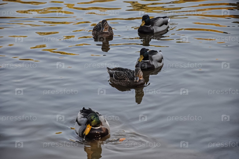 Утки на воде. Утки на пруду. Стая уток. Утки плавают. Серые птицы. Городские птицы. Дикие птицы