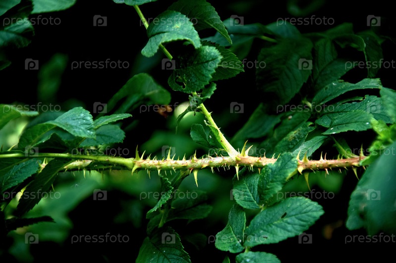 Шипы и листья розы. Растения с шипами