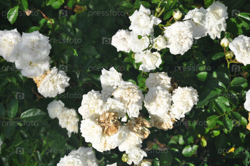 Красивые бутоны роз крупным планом. Белые цветы в саду