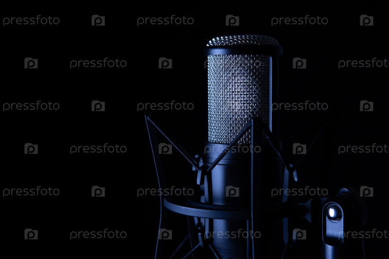 Студийный черный конденсаторный микрофон на черном фоне
