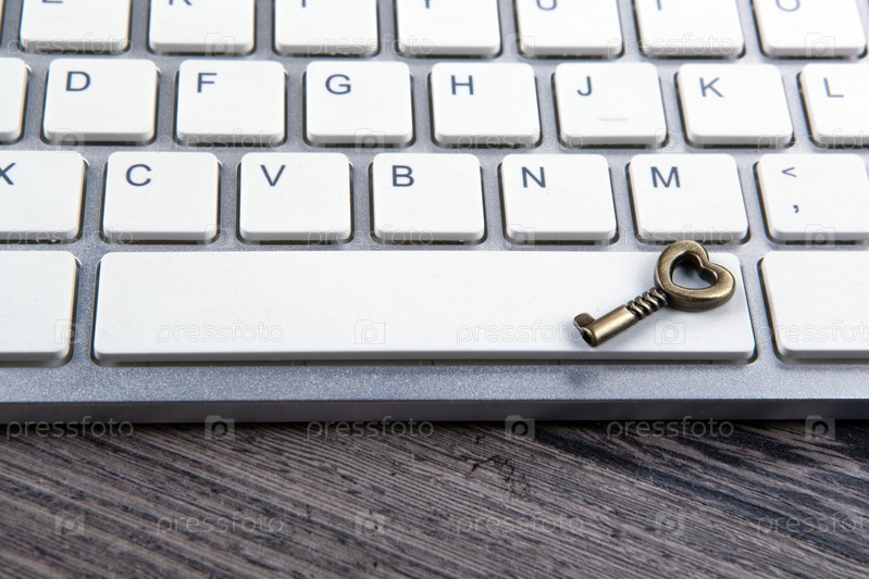 Маленькая ключ на клавиатуре компьютера как крупный план защиты