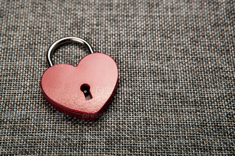 Красный замок в форме сердца на сером белье