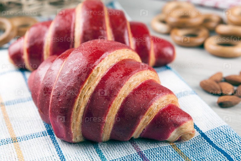 Два круассана с фруктовой глазурью и сушки