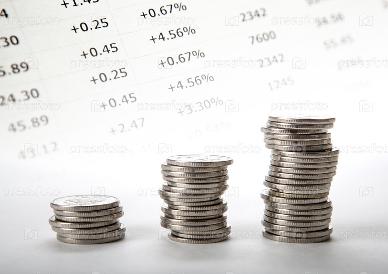Три стопки монет с учетными цифрами