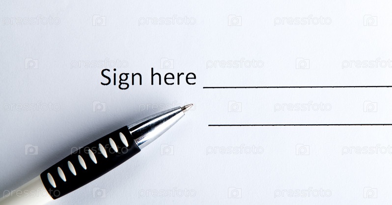Один документ с местом для подписи и ручкой