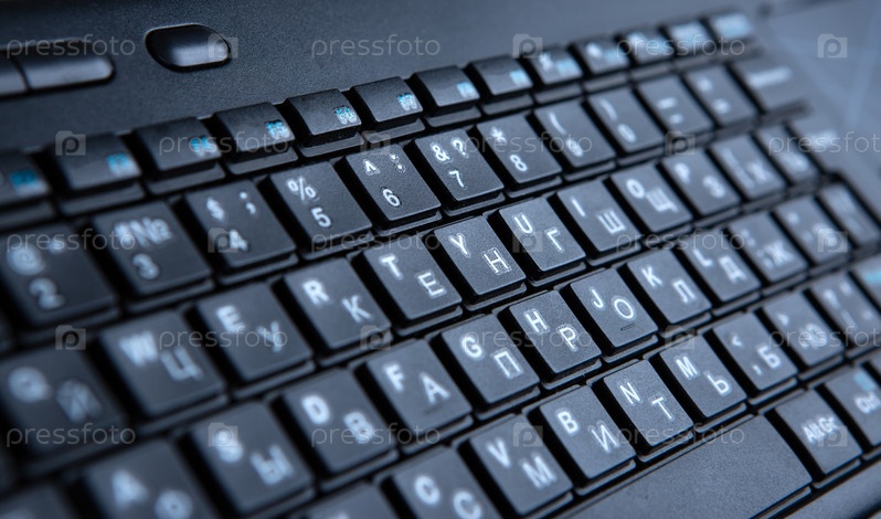 Черные клавиши клавиатуры компьютера и буквы крупным планом