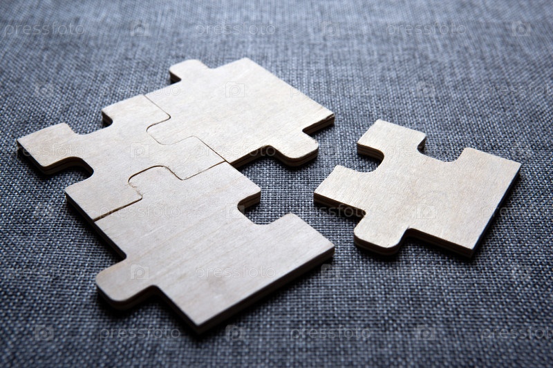 Три кусочка головоломки подряд на текстильном фоне