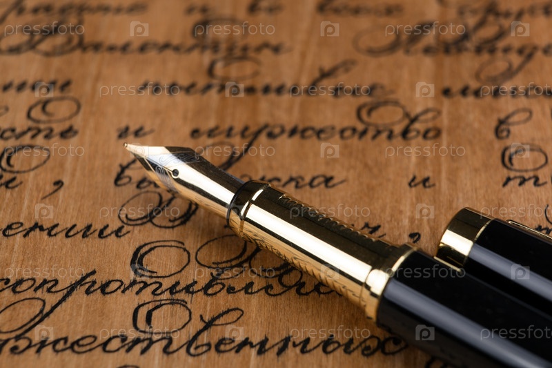 Перьевая ручка на бумаге с текстом чернил