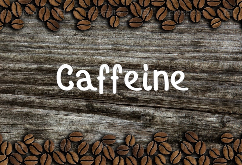 Украшение кофейных зерен с надписью кофеин на деревянном фоне иллюстрации