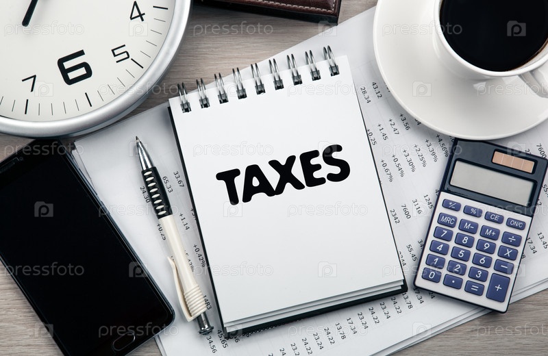 Деловой натюрморт из блокнота с текстом налогов