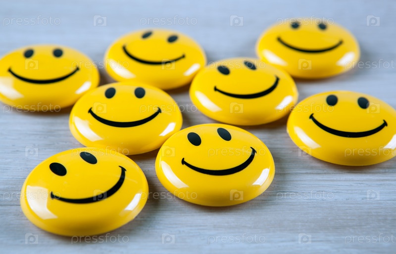 Желтые смайлики на сером фоне вид сверху