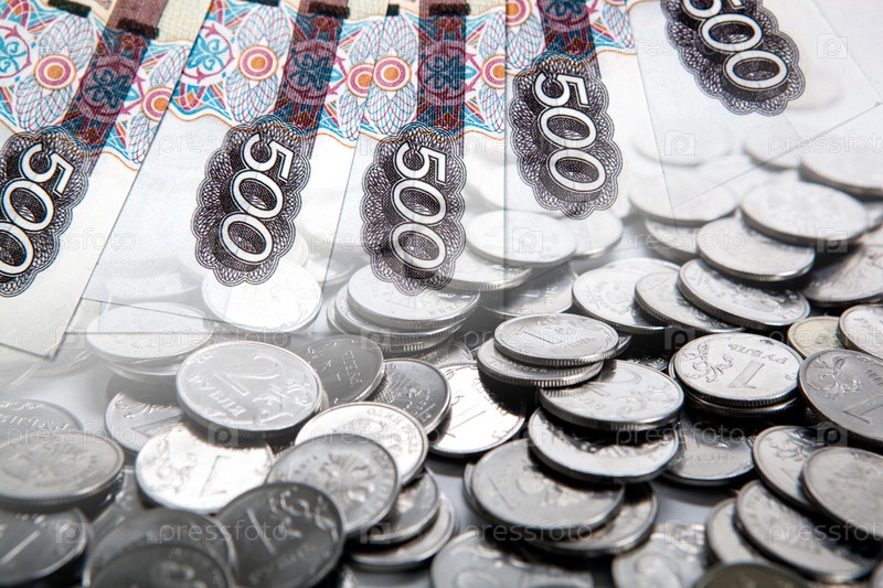 Бизнес натюрморт из денег рублевые купюры и рублевые монеты