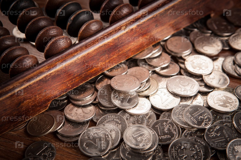 Старые счеты с монетами российского рубля