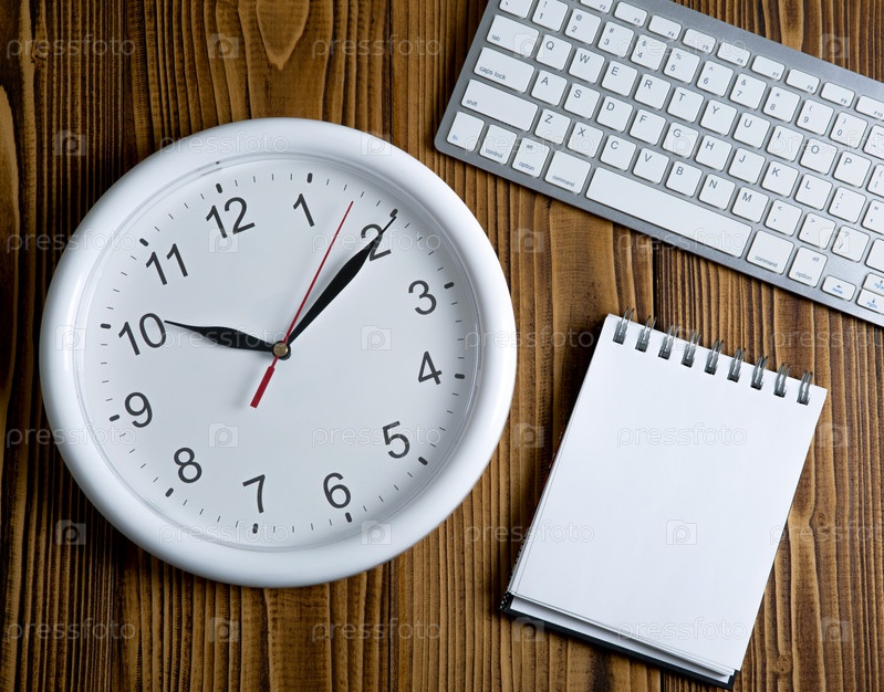 Деловой натюрморт с часами, вид сверху