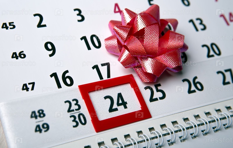 Настенный календарь с днем 24 декабря и праздничным бантом крупным планом