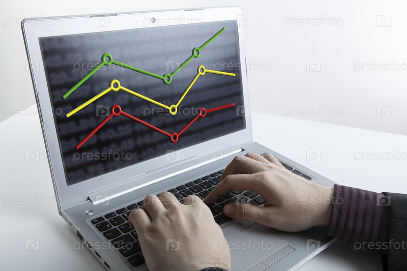 Руки человека, работающего на компьютере с графиками