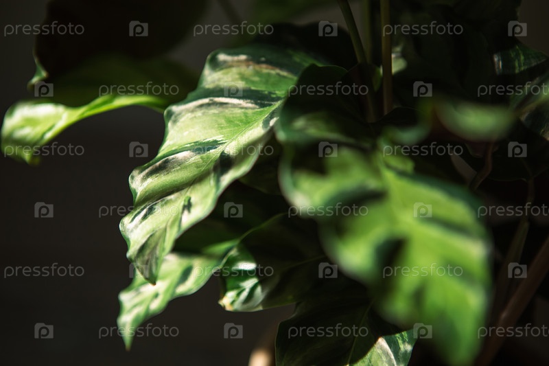Calathea Lietzei зеленый полосатый рисунок листьев в крупном плане. комнатные растения в горшках, зелёный домашний декор, уход и выращивание, сорта маранто